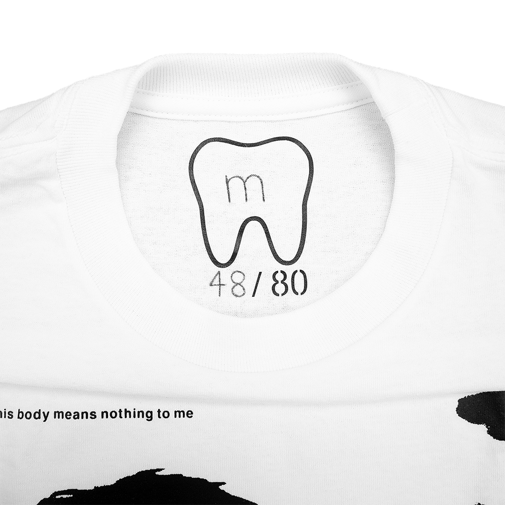 OKay uhhhhh. These are the nicest shirts we've made. Black screen printed graphic on a premium white 100% cotton tee with a thicker collar. Tag is HTV + fabric marker (size and number written by hand). Comes with stickers, a button, and a handwritten note/drawing from Shrimp. As always, every single shirt made and packed by me.
